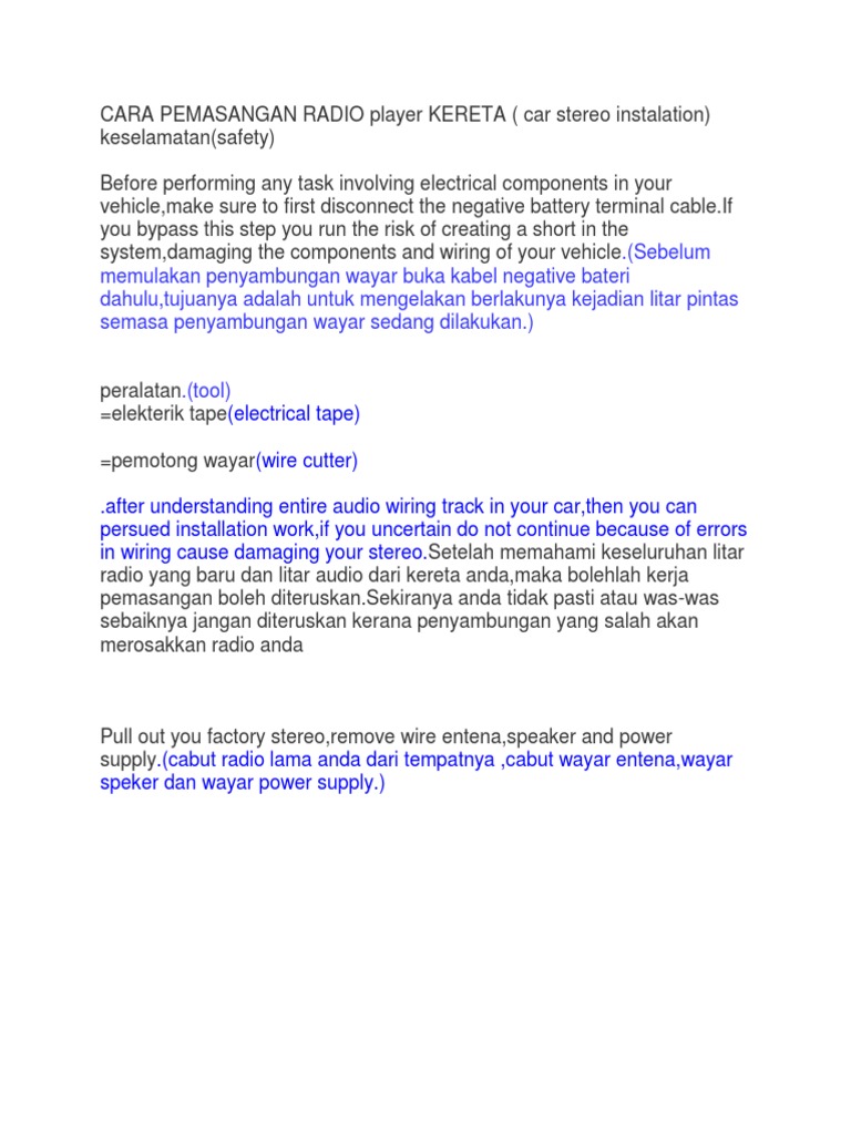 Cara Pemasangan Radio Player Kereta Pdf Electrical Wiring Wire